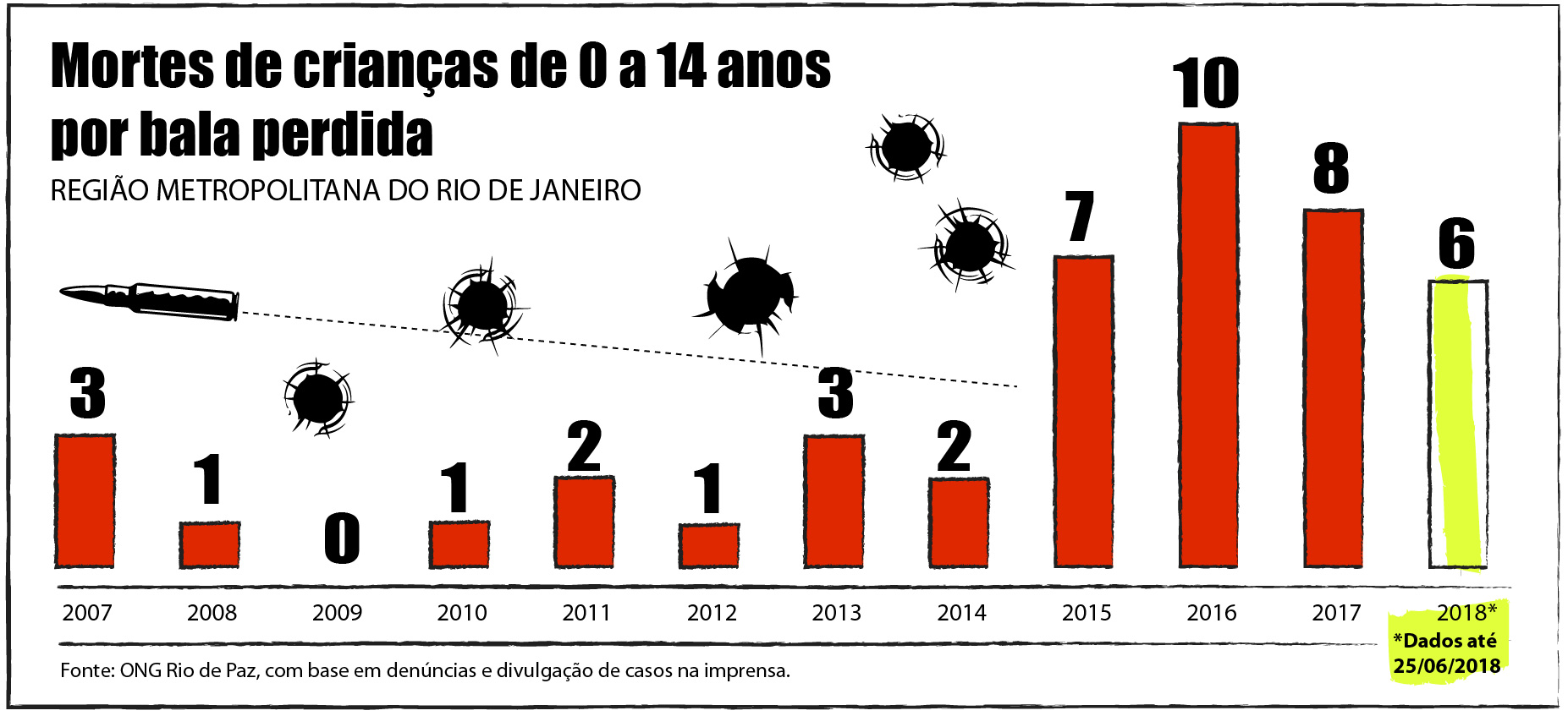 Segundo levantamento da ONG Rio de Paz, o bebê de 1 ano e 7 meses integra uma lista de 45 crianças e adolescentes mortos por balas perdidas desde 2007, quando teve início a contagem das mortes até 14 anos – são consideradas como crianças pessoas até 12 anos, segundo o ECA (Estatuto da Criança e do Adolescente). Os casos são contabilizados por denúncias e matérias jornalísticas, tendo em 2016 o pico de vítimas até o momento, com 10 mortes (confira na arte abaixo). Cinco dos assassinatos registrados pela ONG aconteceram após o decreto da intervenção federal no Rio de Janeiro, decretada no dia 16 de fevereiro de 2018 pelo presidente Michel Temer (MDB).