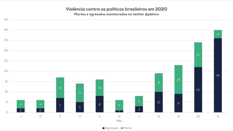 O homicídio de candidatos e políticos é a expressão mais brutal da violência política no contexto eleitoral e tem enormes consequências para o processo democrático como um todo. Desde o início do ano até às vésperas das eleições municipais de 2020, pelo menos 84 políticos e candidatos foram assassinados no Brasil e 105 sofreram outros tipos de ataques ou tentativas de homicídio. Um número desconhecido, mas certamente ainda maior, sofreu ameaças e intimidações.