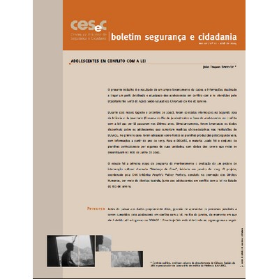 Produto de um amplo levantamento de informações, o artigo busca traçar um perfil detalhado e atualizado, assim como o fluxo de entrada e saída dos adolescentes em conflito com a lei atendidos pelo Departamento Geral de Ações Sócio-Educativas (Degase) do Rio de Janeiro. Os dados foram coletados em 2002 na Segunda Vara da Infância e da Juventude da Capital e nas instituições do próprio Degase. Mostram que os atendidos são na maioria jovens do sexo masculino, com primeiro grau incompleto, que cometeram roubos ou crimes relacionados a drogas e que, ao contrário do que geralmente se pensa, mantêm laços familiares. A pesquisa mostra ainda que grande parte dos adolescentes em situação de rua recebe medida de internação, a mais dura de todas, mesmo tendo praticado atos sem grave violência. O estudo consistiu na primeira etapa do programa de monitoramento e avaliação do projeto de intervenção cultural “Mudança de Cena”, iniciado em janeiro de 2003 e coordenado pela ONG britânica People’s Palace Project.