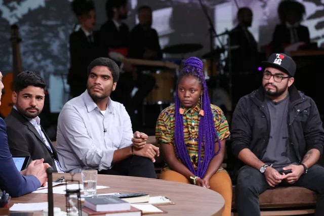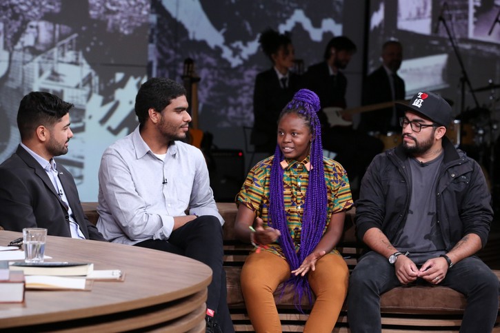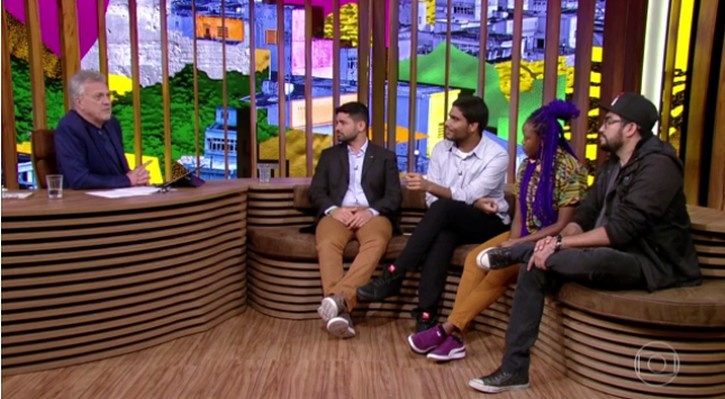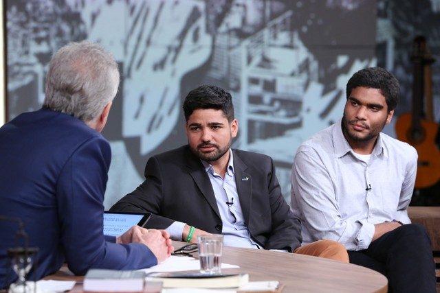 Conversa com Bial desta quinta-feira, 28/9, foi com os jovens Mc Martina, poeta e rapper; Raull Santiago, ativista e criador do coletivo Papo Reto; Samuel Silva, empreendedor do Net Rocinha; e Edu Carvalho, estudante de jornalismo. Na conversa, eles falaram da arte na Rocinha e no Complexo do Alemão e, claro, da esperança de ver um Rio de Janeiro melhor.