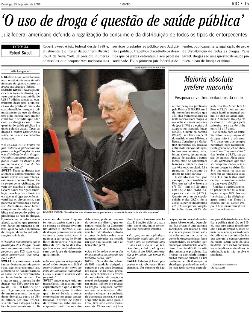 Robert Sweet a Julita Lemgruber, sobre consumo de drogas
