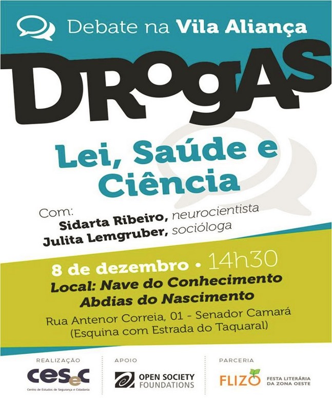 Os debates reúnem especialistas de diversas áreas que pesquisam a questão das drogas, moradores, estudantes e lideranças das favelas, abordando, entre outros temas: