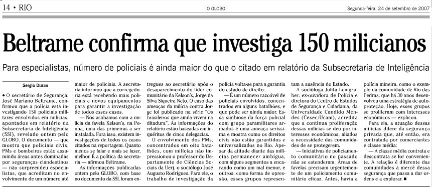 “Segundo a Rede de Observatórios de Segurança (…), a polícia do Rio matou, em 2020, 939 negros (contra 153 brancos). Já a polícia de São Paulo, no mesmo ano, matou 488 negros (contra 281 brancos). É a educação pelo Rio, por comparação com o resto”.