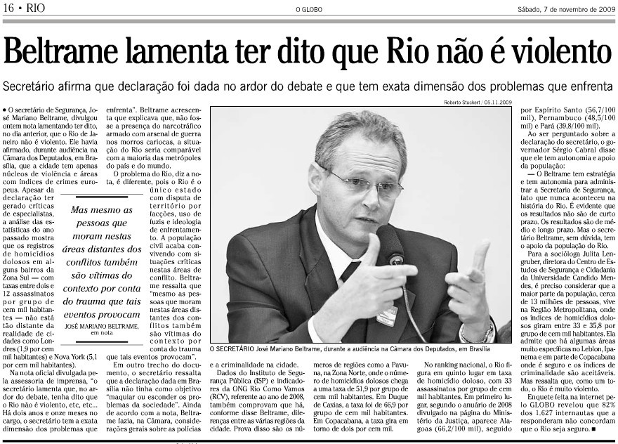 “Segundo a Rede de Observatórios de Segurança (…), a polícia do Rio matou, em 2020, 939 negros (contra 153 brancos). Já a polícia de São Paulo, no mesmo ano, matou 488 negros (contra 281 brancos). É a educação pelo Rio, por comparação com o resto”.