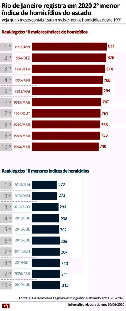 Foram 741 mortes causadas por policiais nos 5 primeiros meses de 2020. São quase 5 pessoas mortas por dia pela polícia no RJ. Número de homicídios cai e bate recorde.