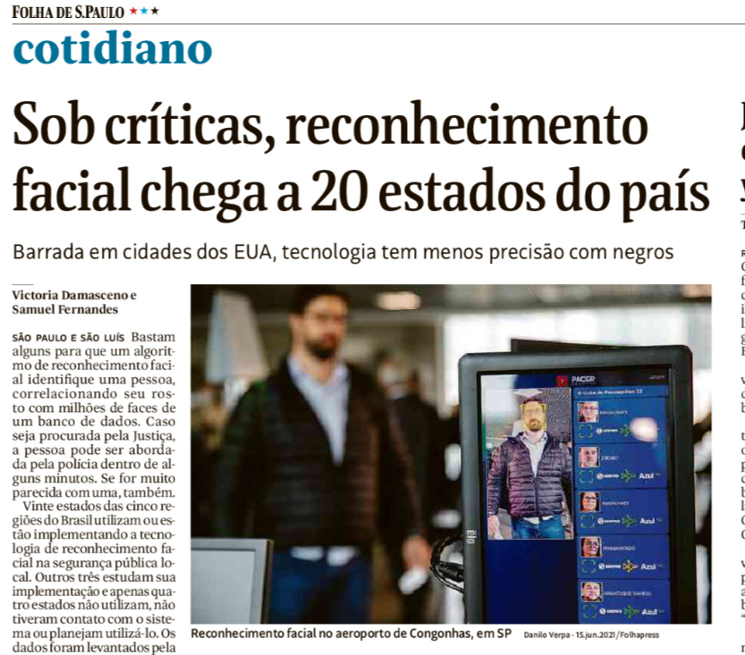 Vinte estados das cinco regiões do Brasil utilizam ou estão implementando a tecnologia de reconhecimento facial na segurança pública local. Outros três estudam sua implementação e apenas quatro estados não utilizam, não tiveram contato com o sistema ou planejam utilizar. Os dados foram levantados pela Folha por meio das secretarias estaduais de Segurança e das polícias Civil e Militar.