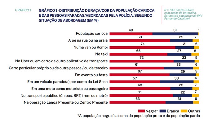 Negros são mais abordados em todos os cenários, segundo a pesquisa. — Foto: Reprodução