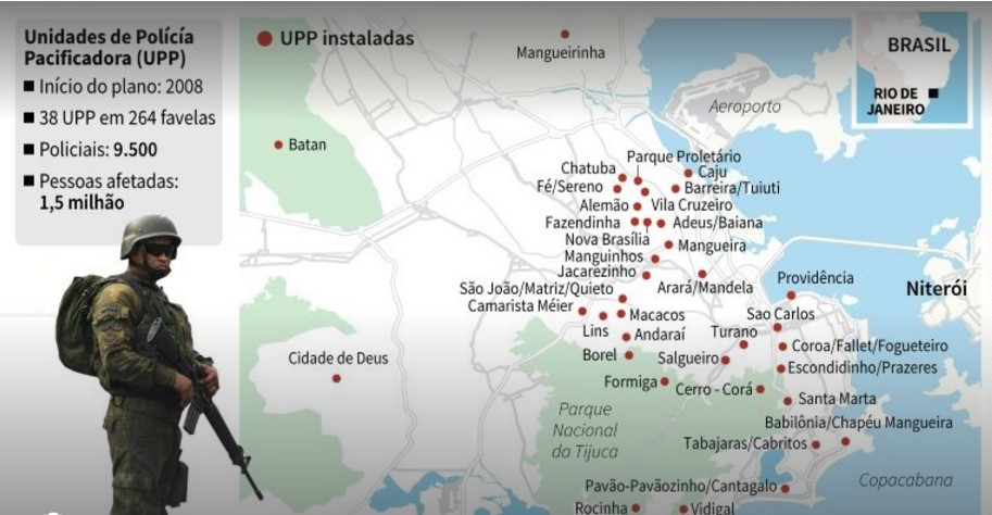 Infográfico sobre a crise no programa policial das favelas do Rio de Janeiro – AFP